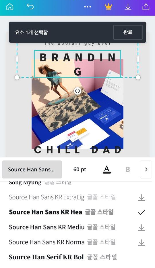 저는 Source Han Sans KR Hea 글꼴을 선택했습니다.