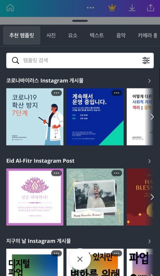 Canva 라는 어플인데요, 인스타그램 게시물 뿐만 아니라 다양한 컨텐츠를 쉽고 빠르게 만들 수 있어서 애용하고 있는 어플입니다.