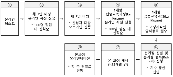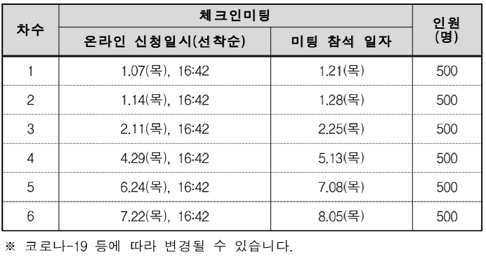 체크인 미팅 등 추후 일정은 모두 선착순으로 신청을 받다보니, 1,2차수 체크인 미팅은 벌써 1000명이 넘는 대기자가 있더라구요. 그래서 미리미리 온라인 테스트를 진행하고 체크인 미팅 신청을 하는게 좋을 것 같습니다.